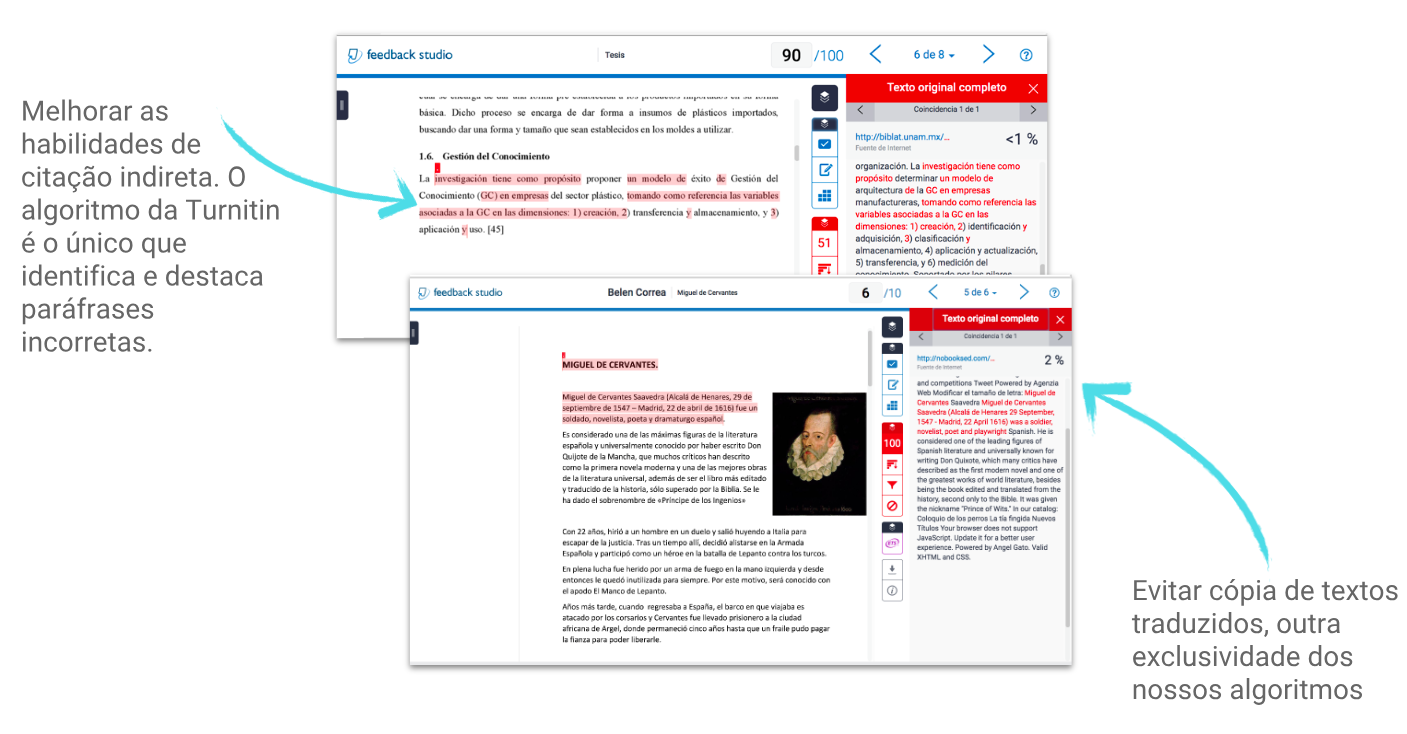 Com Turnitin Feedback Studio, os alunos podem ter acesso aos relatórios antes da submissão final para identificar similaridades, encontrar fontes de pesquisa mais relevantes e também: